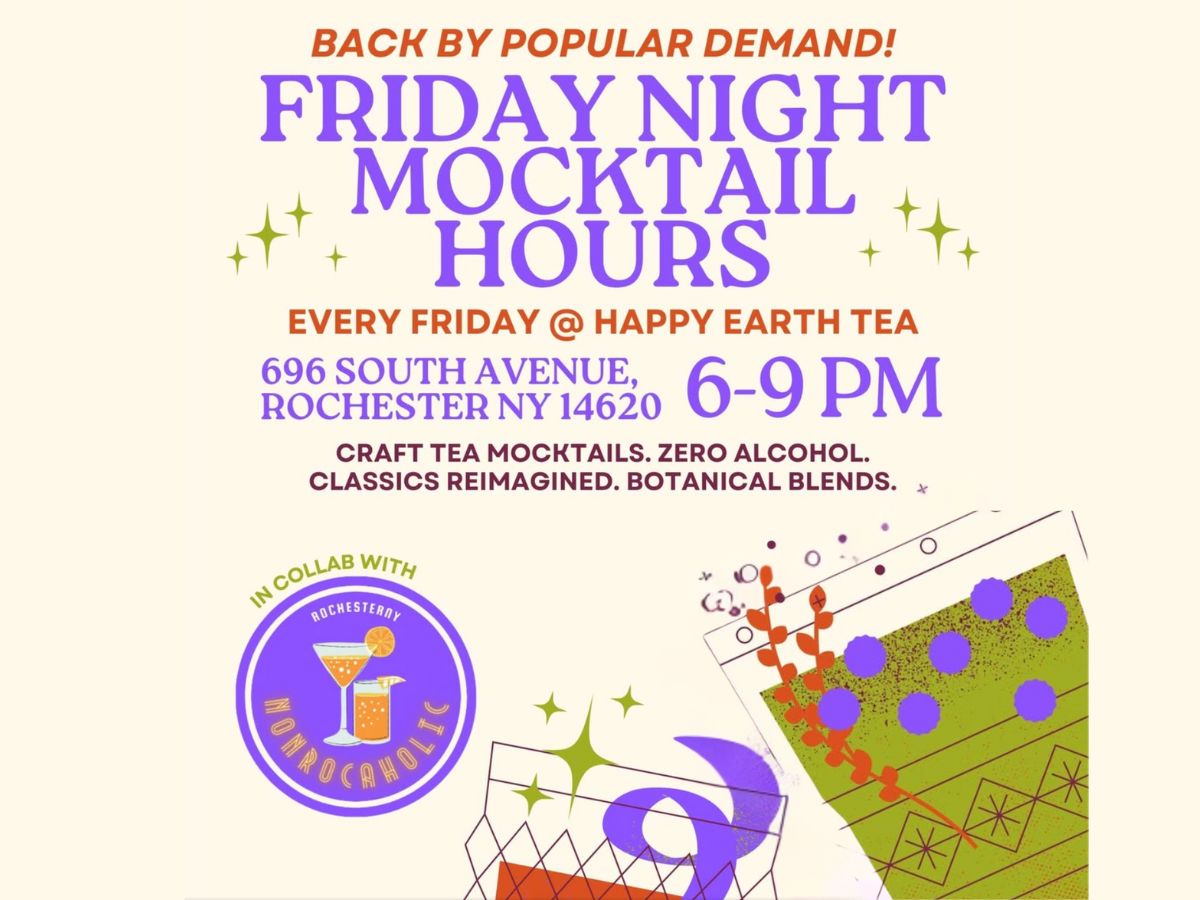 We’re excited to share that starting the first week of February — and continuing every Friday night — Happy Earth Tea will be hosting Friday Night Mocktail Hours from 6–9pm.
